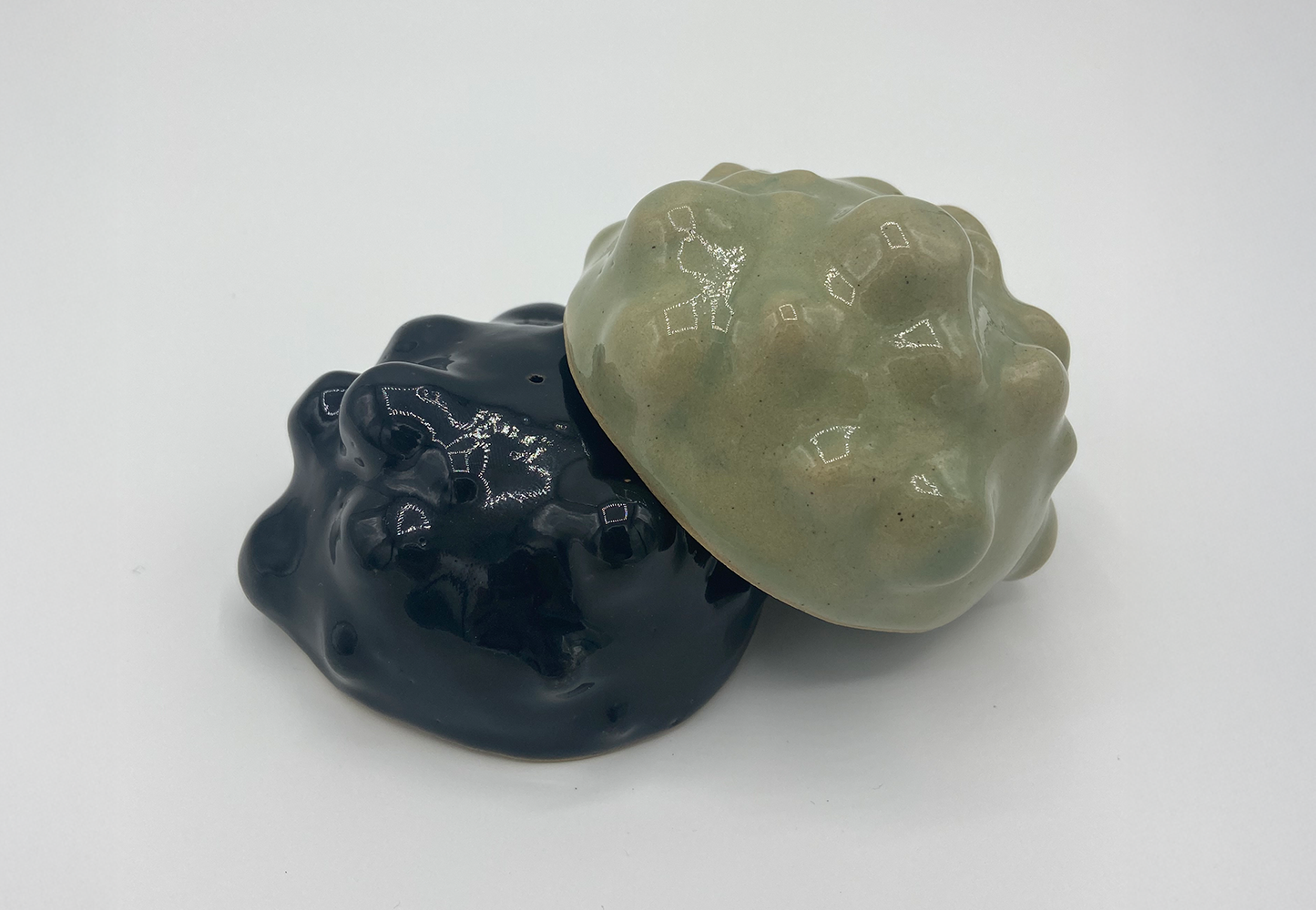 Un duo de céramiques qui réinvente le porte-encens en s’inspirant des champs de mousse silencieux des sous-bois. Ces formes rondes et bosselées, évoquant des micro-paysages végétaux, s’assemblent comme une sphère onirique, ou se détachent pour fonctionner indépendamment.