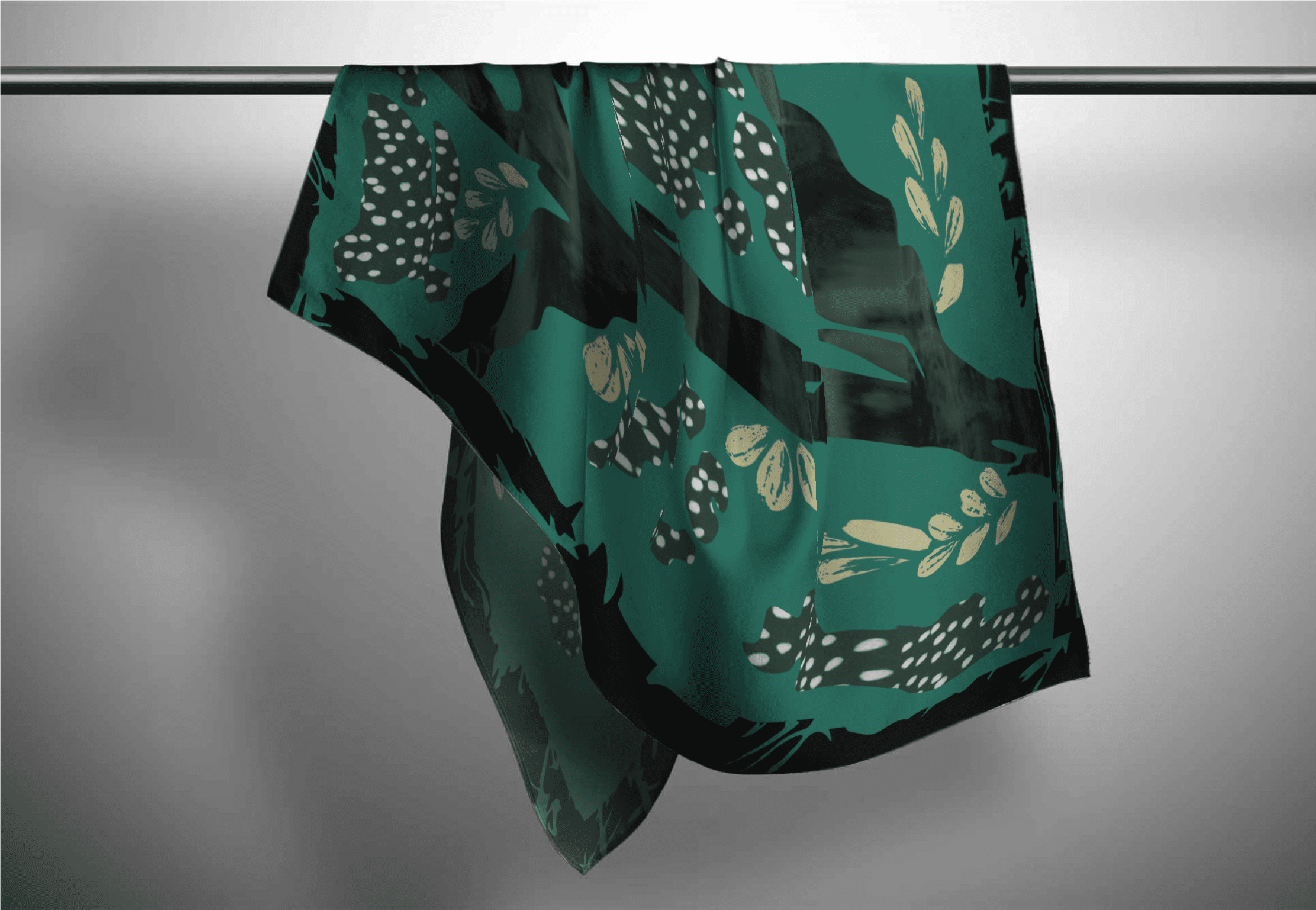 Le motif, construit à partir de textures végétales, explore la vibration des couleurs et la délicatesse des formes organiques, comme une célébration du vivant.